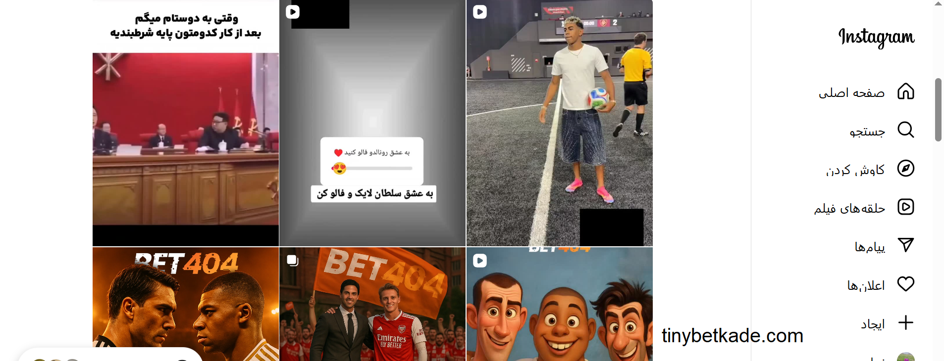 محتوای منتشرشده در پیج اینستاگرام بت 404